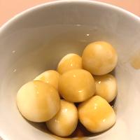 - 4 2を氷水に入れて水気を切り、爪楊枝に2個ずつ刺して皿に盛り付けます。