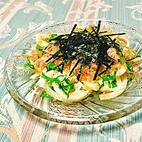 - 3 器に盛り付け、かつお節とのりをかけたら完成です。