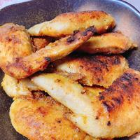 娘が作りました。衣を薄くして、揚げ焼きにしました。カレー味がスパイシーでカリッとしてとてもおいしかったです。鳥胸肉やもも肉、ささみでもチャレンジしようと思います。お弁当に良いかも。