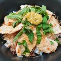 忙しいときにも簡単に作れるボリュームたっぷりの豚丼をわさび醤油でいただきます。ごはんに敷き詰めたたっぷりのかつお節とのり、わさびの爽やかな辛味がとても良いアクセントになり、どんどんごはんが進みますよ。大きめに切った豚肉でごはんとわさびを巻きながらお召し上がりいただくのがおすすめです。