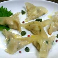 電子レンジで加熱した鶏ささみと大葉、クリームチーズを合わせたおつまみ餃子です。中身は加熱してあるので、サッと火を通すだけで美味しく召し上がれますよ。蒸し焼きのほか、トースターで焼いてもよいです。ぜひお試しください。