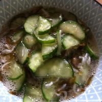 しらすと梅をもずく酢で和えました。コリコリとした食感のきゅうりとつるっとしたもずく酢が楽しめるお料理です。簡単にお作りいただけるので、忙しい日にもおすすめです。ぜひお試しくださいね。