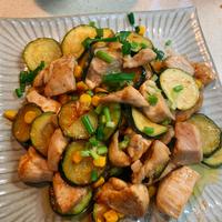 物珍しい黄色いズッキーニを見かけたのでとりむねも買ってチャレンジ!マヨ梅・・特にコーンが効いてる!(^○^)