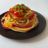「中華風味で!パプリカとしめじのスパゲティ」の作り方を簡単で分かりやすいレシピ動画で紹介しています。
