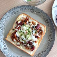 チリコンカントーストのご紹介です。メキシコ料理の定番料理をトーストにしてみました。具材たっぷりで、食べ応え十分なトーストです。スパイシーでついついクセになる美味しさです。朝食やおやつの時などにぜひお試しくださいね。