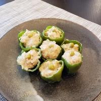 シュウマイの皮をピーマンに代えて作る、アレンジシュウマイのレシピです。電子レンジ調理なので、火を使わずに手軽にお作りいただけますよ。ピーマンをカラーピーマンに代えると見た目も華やかになり、おすすめです。ぜひお試しくださいね。
