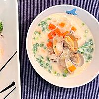 冷蔵庫にあるもので作ったので、アサリではなく揚げを入れました。また、無調整豆乳だったので、水を250cc、豆乳を150ccにしました。コクがあって、とても美味しく出来ました♪