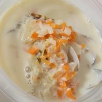 豆乳の苦味がすごく出てしまいました。においもものすごいクセがあります。塩も足してみましたが、甘味が抜けず。。わけのわからない味のスープになりました。