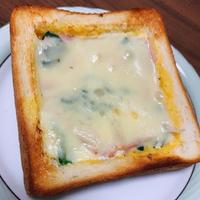 4枚切りトーストで作りました😊しめじ は無かったので、代わりにほうれん草を入れました👌🏻ボリュームたっぷりで美味しかったです✨