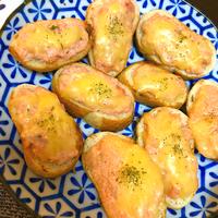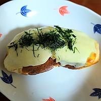 - 5 4に3を塗り、ピザ用チーズをかけたら、アルミホイルを敷いた天板にのせ、オーブントースターでチーズがとろけるまで4分程焼きます。