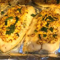 パセリ乗せてオーブントースターで焼きました。パンチがもっと欲しかったので、次はマスタード多めで作ります!