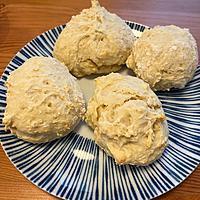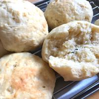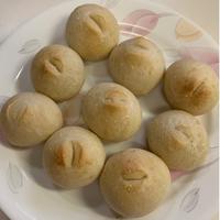 半分の分量で作りました。優しい味で次は生地に何が入れてみようと思います!皆さんが言う通り手にめちゃめちゃくっつくので打ち粉の量を気持ち多めにしたら意外と綺麗に丸まりました!