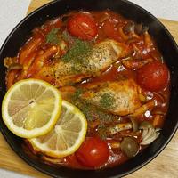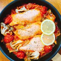 トマトの酸味と鮭の旨味、たっぷりの野菜が美味しいトマトパッツァのレシピです。具材とトマトソースをスキレットに入れて10分蒸し煮にするだけで簡単におしゃれなイタリアンに仕上がります。彩りも良いのでおもてなしにもぴったりですね。お好みの野菜や魚でアレンジしてみてくださいね。