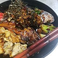 - 11 器にごはんをよそい、10のナス、1を盛り付け、2、10の残ったソースをかけ、かつお節をのせて完成です。