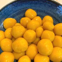 白玉粉にかぼちゃペーストを練り混んだ、かぼちゃ団子です。鮮やかな黄色の白玉団子は、見た目にもかわいらしいですよ。シンプルな白玉団子と二色にするのもおすすめです。簡単に作れるので、ぜひお試しくださいね。