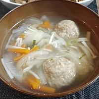 春雨、えのき、にんじん、玉ねぎ、ねぎ、肉団子で塩コショウを足して作りました
