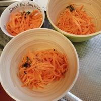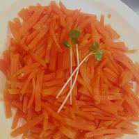 バターキャロットのご紹介です。にんじんを細く千切りにし、バター風味に仕上げました。シンプルな味付けなので、にんじん本来の自然な甘みが楽しめます。電子レンジで簡単に作れますので、ぜひお試しくださいね。