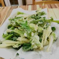 大根の葉と一緒で見栄えが良くありませんが。天ぷらそばに。