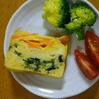 混ぜて切って入れてオーブンという手軽さで、このボリュームは嬉しい。味も野菜の甘味と生地の塩気で絶妙です。アレンジもしやすいのがいいですね。