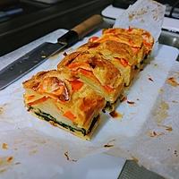 野菜の甘みと生地の塩気が絶妙な彩り鮮やかな一品です。にんじん、じゃがいも、ほうれん草などの具材を層にして焼き上げると、断面が美しく仕上がります。スモークサーモンやアスパラガス、ベーコンなど具材のアレンジも自在。生地はしっとりと柔らかく、野菜はフォークでも切れるほど柔らかい食感に。翌日リベイクすると味が馴染んでさらに美味しくなります。朝食やおやつにもぴったりな一品です。