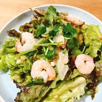 減量中なので油は抜きで。醤油の代わりにナンプラー入れました。チリソースがサラダに合うのでパクパク食べちゃいます。