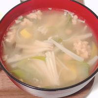 - 4 鍋に水、1、2、なめこを入れ、中火で煮立たせます。
