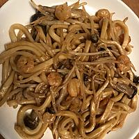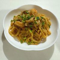 うどんがきれないようにほぐしながら混ぜてください。エビは焼きすぎると硬くなるので気をつけてください。 塩加減は、お好みで調整してください。
