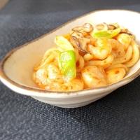 「エビのオイマヨ焼きうどん」の作り方を簡単で分かりやすいレシピ動画で紹介しています。