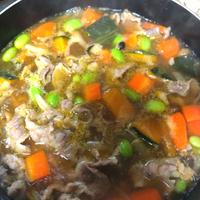 - 4 野菜が柔らかくなったら、めんつゆ、砂糖を加え、中火で5分程煮ます。