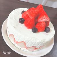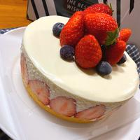 パパの46歳🎉お誕生日に7歳娘がケーキをクラシルで、選び👩作りました‼️思ったより、スポンジが膨らみました🙌はちみつを入れたから、普段のスポンジよりツヤツヤで甘すぎない甘さでした✨レアチーズケーキは、ババロアに似ていました✨はちみつを全部で120g使い甘さが、心配でしたが🙆♀️いちごの酸味が良く、全体的に甘すぎない食べやすいケーキでした。ボリュームが凄いです‼️作る時、いちごの下までレアチーズケーキが届かなかった箇所は、生クリームで埋めました‼️上部分の生クリームを市販のチューブにしたら、シュワシュワと時間が過ぎる度に消えたので、次回は、生クリームも泡立てます✨1番小さな型15センチだったので、同じ日にレアチーズタルトケーキと、贅沢いちごとベリーの鮮やかゼリー、ティラミスを作り、全ていちご5パックを使い切りました💓上の飾りいちご13粒。オーブン170度25分間(7分前に、焦げそうか心配でアルミホイルを被せました。)