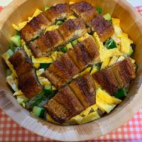 チラシ寿司がさっぱりしているので宮崎の鰻があう、味変で鰻のタレと山椒をかけるのもアリ😋キュウリは苦手なので要らない、アボカド忘れた…