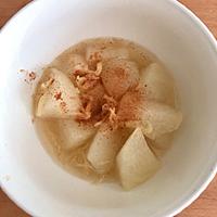 蜂蜜が染み込んだ梨の柔らかい食感が好みです!生姜も温めると刺激が強くなり、蜂蜜と梨の甘さに良く合います。寒い日にピッタリですね。