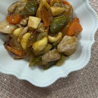 むね肉175・(A)はそのまま(数時間漬け込み)、人参の代用で筍160に増量、ピーマン1個とカシューナッツ25使用。たべれぽ参考に調味料を1.5倍(味濃い)。いつも自分で作る青椒肉絲みたいな味、むね肉は柔らかいと✏️