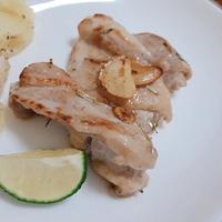すだちとローズマリーが香る、チキソテーのご紹介です。さっぱりとしたすだちの風味が美味しく、ローズマリーと一緒に揉み込んで焼くだけで、とても簡単におしゃれな一品が出来ます。ニンニクの風味もとても合いますよ。
