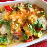 野菜いっぱいでヘルシー、チーズとオリーブオイルかけて焼くだけ。