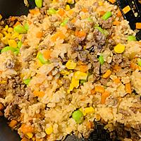 - 5 2、牛豚合びき肉を入れ、牛豚合びき肉の色が変わるまで中火で炒めます。