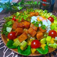 - 7 準備した材料をそれぞれ飾って、最後にお好みでマヨネーズ・目玉焼きをのせてできあがりです。