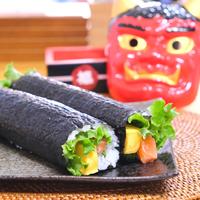 1日早めの節分。キュウリをレタスにかえ酢飯に砂糖小さじ1追加。美味しい。
