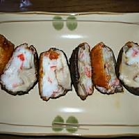 - 5 1の内側に薄力粉をまぶし、4をしっかりと詰めてたら、片栗粉を全体にまぶします。