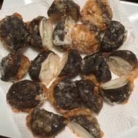 油は椎茸が半分位浸かるぐらいで、しんじょの具が詰まっているほうを下にして、しばらくそのままにして揚げて、そのあとひっくり返すと良さそうです🎵