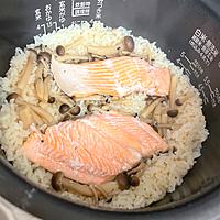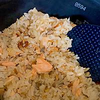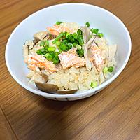 冷凍していた鮭(1)をバター(10g)で両面焼き目をつけてから、溶けたバターと一緒に入れて炊いてみました。美味しくて間違いなくリピートします。(人参、椎茸、鮭)