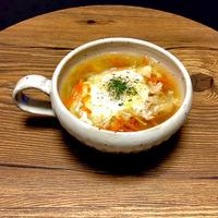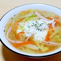 シンプルな材料で手軽に作れる温かいスープです。千切り野菜は火通りが早く時短になり、キャベツやにんじんでたっぷり野菜も摂取できます。半熟の落とし卵のコクが加わることで、ぽかぽかと体が温まる優しい味わいに。ウインナーやハムを加えたり、和風だしでアレンジしたりと、家にある材料でアレンジ自在。卵を崩して食べると、また違った美味しさを楽しめます。