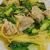 鶏肉と小松菜がペペロンチーノに相性良かったです