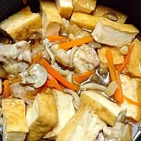 二回目のリピ!前回よりも美味しくつくれました♪とりもも肉250g、にんじん1/2本細切り、しめじ一袋、厚揚げ豆腐2個パックのを一袋でつくりました。前回はフライパンでつくったのですが、今回は煮物感出すためお鍋で。最初に片栗粉をまぶした鶏肉を軽く炒め、しめじ、にんじん、厚揚げの順で入れます。レシピにはありませんが、ここでお水を50cc、白だしを大1入れて蓋をして弱火で10分加熱。しっかり鶏肉に火を通してから調味料で味つけ。今回はお砂糖を小2に変更。(甘いのが好きなので。次回は大1でもよいくらい。)その他の調味料はレシピ通りにつくりちょうど良かったです。具だくさんでたんぱく質もたくさんとれるので栄養満点!片栗粉のとろみがいい感じのさっぱりした煮物に仕上がりました!2022/9/20
