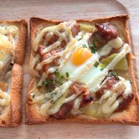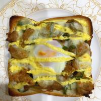 照り焼きチキンとチーズ、半熟卵が相性抜群のトーストはいかがでしょうか。ボリュームがあり、食べ応え満点の一品なので、がっつり食べたい時の朝食や、ランチなどにぴったりですよ。ぜひお試しくださいね。