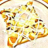 朝食にコーヒーと♪ ピーマンがなかったのがちょっと残念。でもめちゃめちゃ美味しかったです!トースト1枚でもボリュームがあり大満足!たまごをもう少し・・・と思って追加で2分程焼きました。