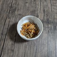 ごま油とすりごまの香ばしい風味が食欲をそそる定番のきんぴらです。ごぼうは酢水に浸すことで歯ごたえよく仕上がり、にんじんは太めにカットすることで食感が楽しめます。ピリッと効いた鷹の爪の辛みがアクセントになっており、お箸が止まらなくなる美味しさ。砂糖を使わないあっさりめの味付けで、お弁当の常備菜としても大活躍します。