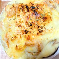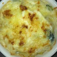 - 9 グラタン皿に1をいれ8をかけます。ピザ用チーズをのせオーブントースターでチーズにこんがりと焼き色がつくまで10分程度焼いて完成です。