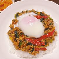 彩り野菜を入れたドライカレーのご紹介です。トッピングにチーズや目玉焼きを乗せてボリュームある一品にしても美味しいですよ。野菜は、余り野菜でも美味しくお作りいただけます。今回は豚ひき肉を使いましたが、合いびき肉や鶏ひき肉でも美味しくできますので、ぜひお試しください。