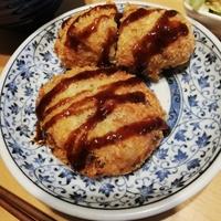 - 8 フライパンの底から3cmほどの高さまで揚げ油を注ぎ、180℃に熱します。7を入れ衣がこんがりとするまで4分程揚げたら油を切ります。